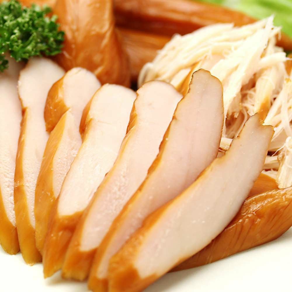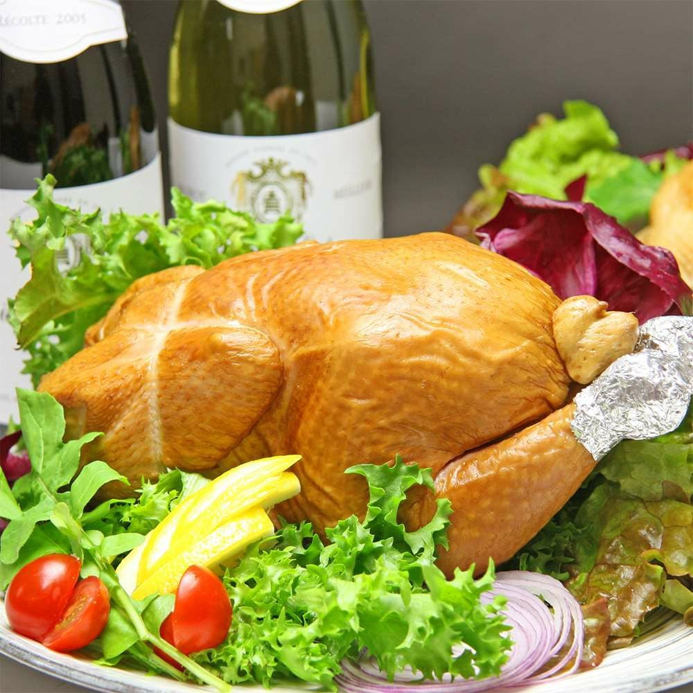 鶏を一羽丸々と燻したスモークチキン・鶏ハムです。クリスマスにはクリスマスチキンとしてご利用になる方も多い人気のスモークチキンです。