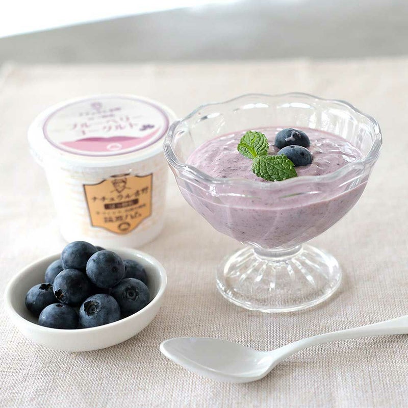 ブルーベリーヨーグルト:牛乳(生乳(茨城県産))、ブルーベリー、砂糖、乳製品、オリゴ糖