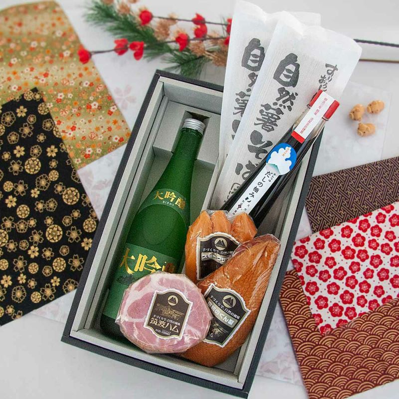 すりおろし自然薯を使用したこだわりの自然薯そば つくばコレクション認定品 茨城県産すりおろし自然薯使用の珍しい乾麺。 乾麺では珍しい生のすりおろし自然薯を使用した、自然薯の風味がある喉越しの良いこだわりのお蕎麦です。 沼屋の化学調味料無添加めんつゆ 国産丸大豆二年醸造寒仕込み醤油を基にしためんつゆです。 良質の日高昆布とかつお節の一番だしを使用しました。 木内酒造 菊盛 純米大吟醸 厳選した酒造好適米を贅沢に磨き上げ、低温でじっくりと醸した純米大吟醸。 華やかな香りとふくらみのある旨みが調和し、口に含むたびに上品な余韻が広がります。料理の味を引き立てる穏やかな酸味と、なめらかな口あたりが特長。 晴れの日の食卓や贈り物にもふさわしい、木内酒造を代表する一本です。
