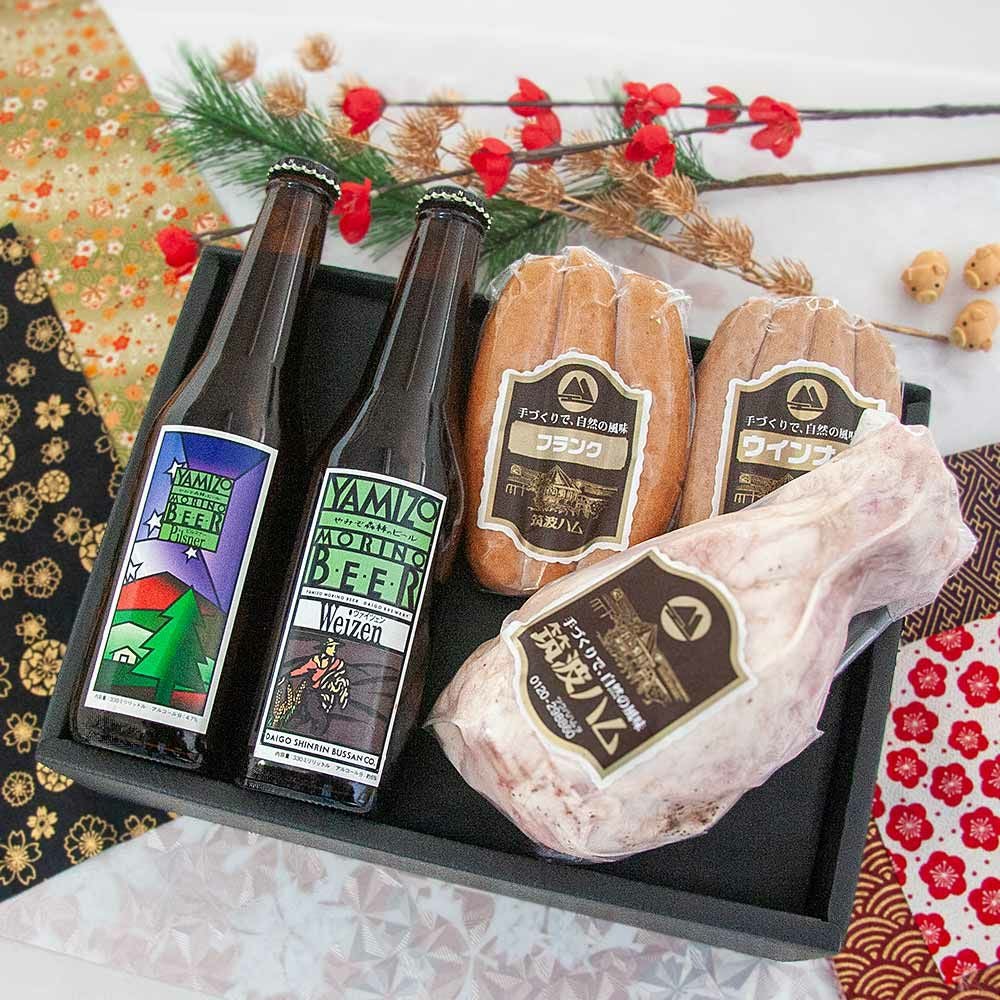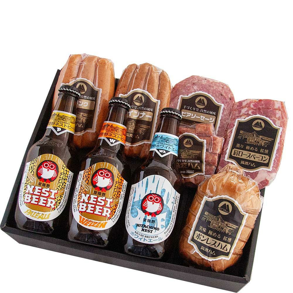 大子ブルワリーの、「ヴァイツェン、ピルスナー、ヘレス」と筑波ハム商品の詰め合わせになります。