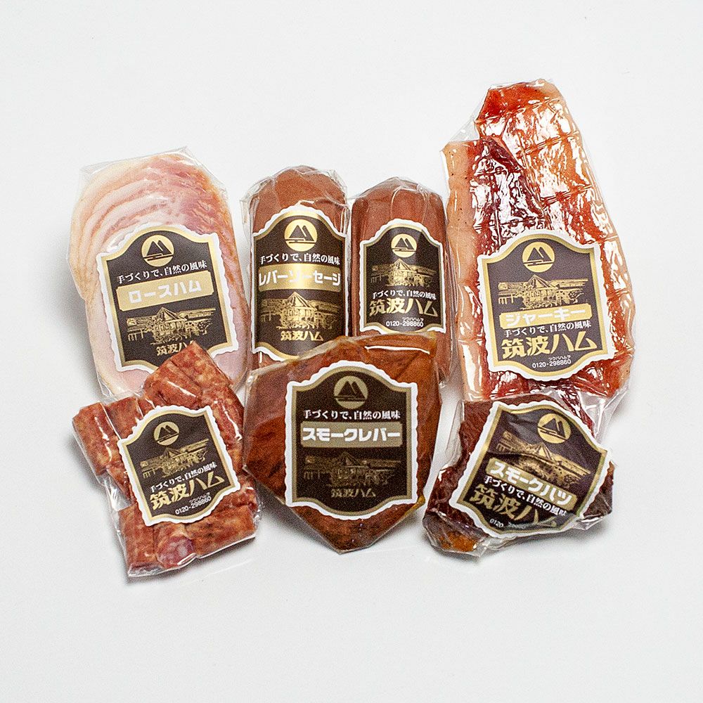 厳選された茨城県産ブランド豚「常陸の輝き」・「ローズポーク」を使用し、伝統の製法で丁寧に仕上げた筑波ハムの「天竺布巻きハム」。 20日間じっくり熟成させた後、炭火で乾燥し、桜の薪で燻すことで、深い旨味と芳醇な香りを生み出しました。