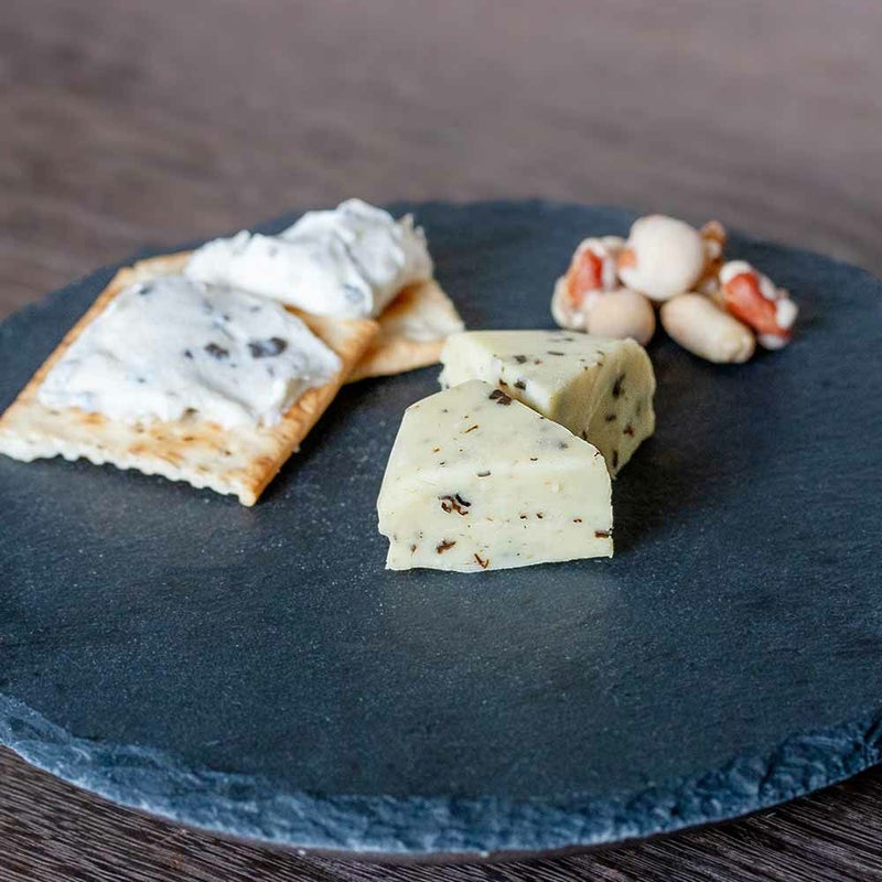 サマートリュフを使ったトリュフチーズ イナウディ社製のマッシュルームと黒トリュフを細かくみじん切りにした、トリュフの香り豊かなソースを使い、筑波ハムのチーズとバランスよく練りこみました。 サマートリュフを使ったトリュフチーズ トリュフとマッシュルームを細かく刻んだ、トリュフの香りが豊かなソースを使い、筑波ハムのチーズとバランスよく練りこみました。 トリュフの含有率は5%。オリーブ不使用のためトリュフ感が強く、お肉のソースやリゾット、オム レツなどの卵料理やパスタなどお使いいただけます。