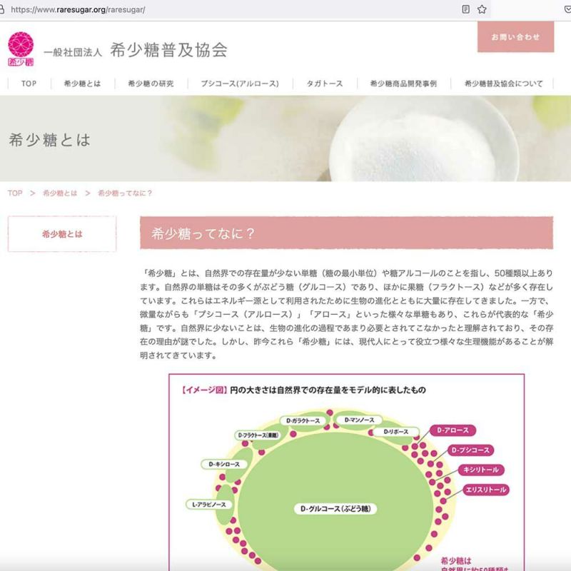 「希少糖」とは、自然界での存在量が少ない単糖(糖の最小単位)や糖アルコールのことを指し、50種類以上あります。自然界の単糖はその多くがぶどう糖(グルコース)であり、ほかに果糖(フラクトース)などが多く存在しています。これらはエネルギー源として利用されたために生物の進化とともに大量に存在してきました。一方で、微量ながらも「プシコース(アルロース)」「アロース」といった様々な単糖もあり、これらが代表的な「希少糖」です。自然界に少ないことは、生物の進化の過程であまり必要とされてこなかったと理解されており、その存在の理由が謎でした。しかし、昨今これら「希少糖」には、現代人にとって役立つ様々な生理機能があることが解明されてきています。
